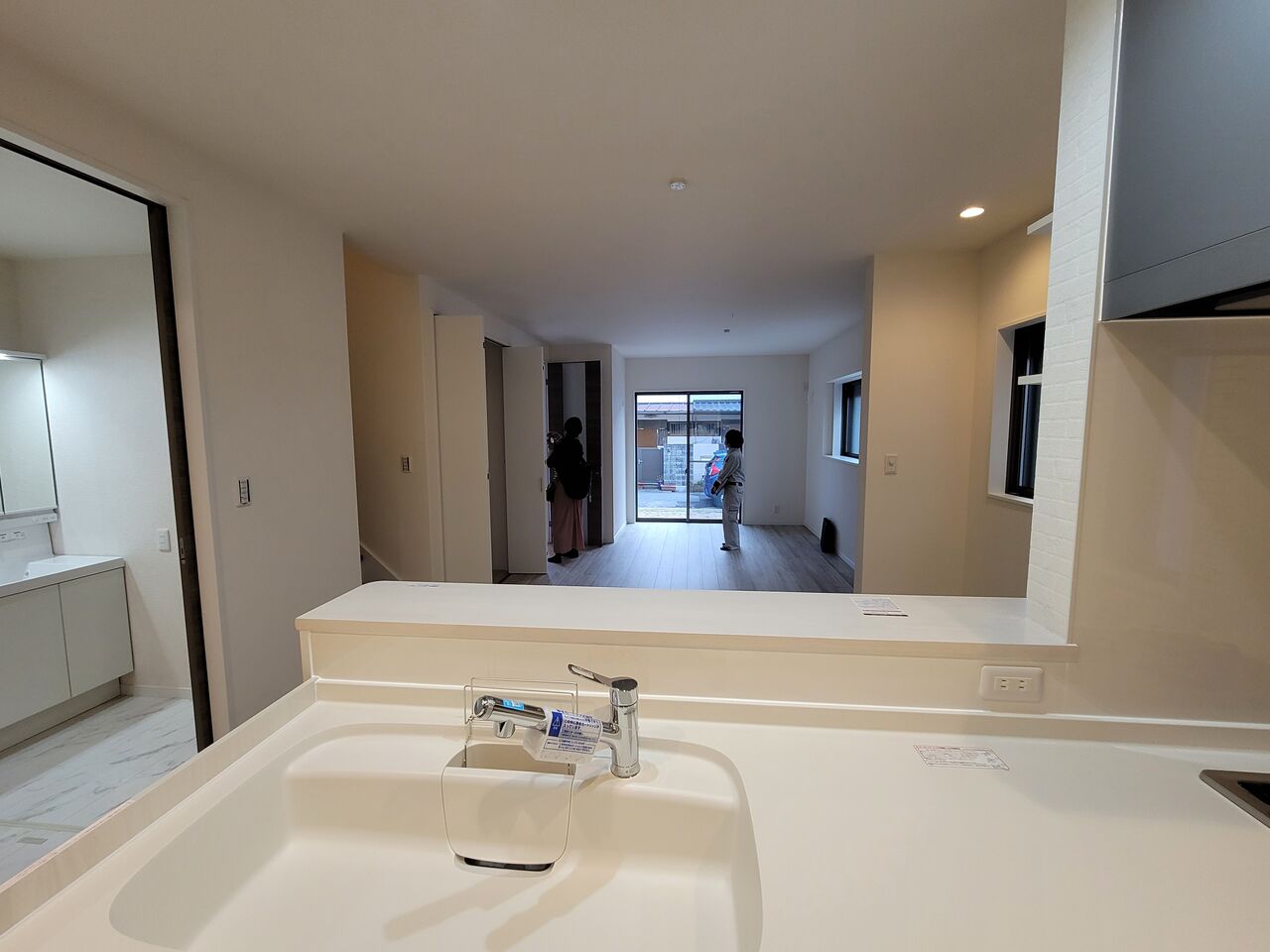 キッチンからリビングを一望でき、