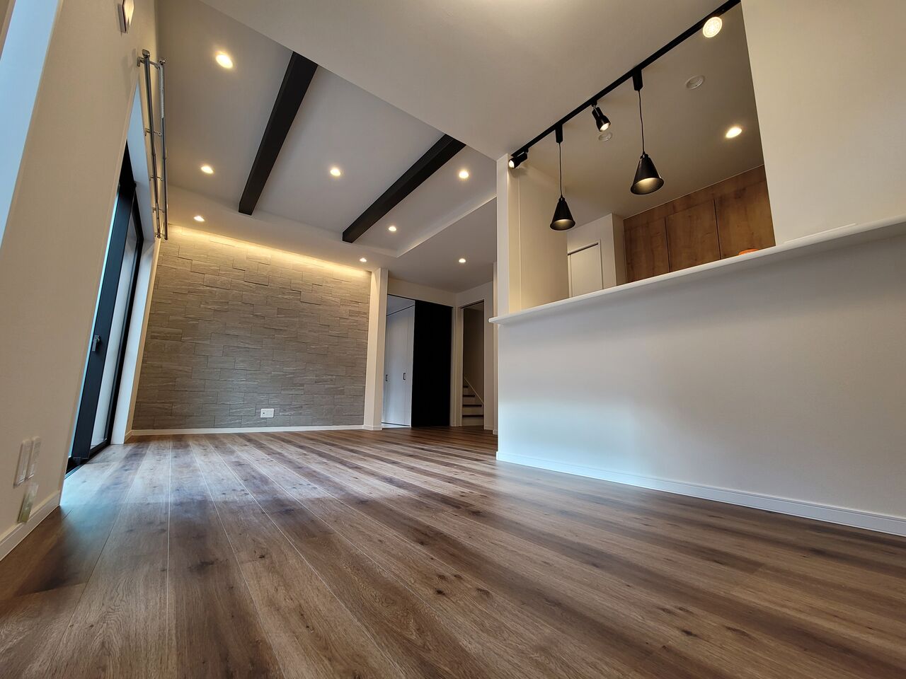 リビングルームも照明器具の配置にこだわりました!!