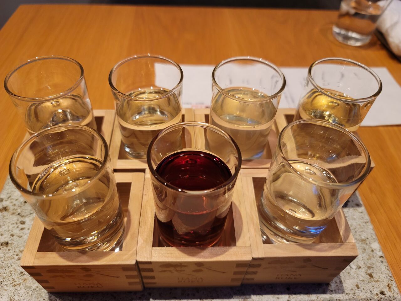 日本酒の飲み比べ5杯セットをオーダーすると、